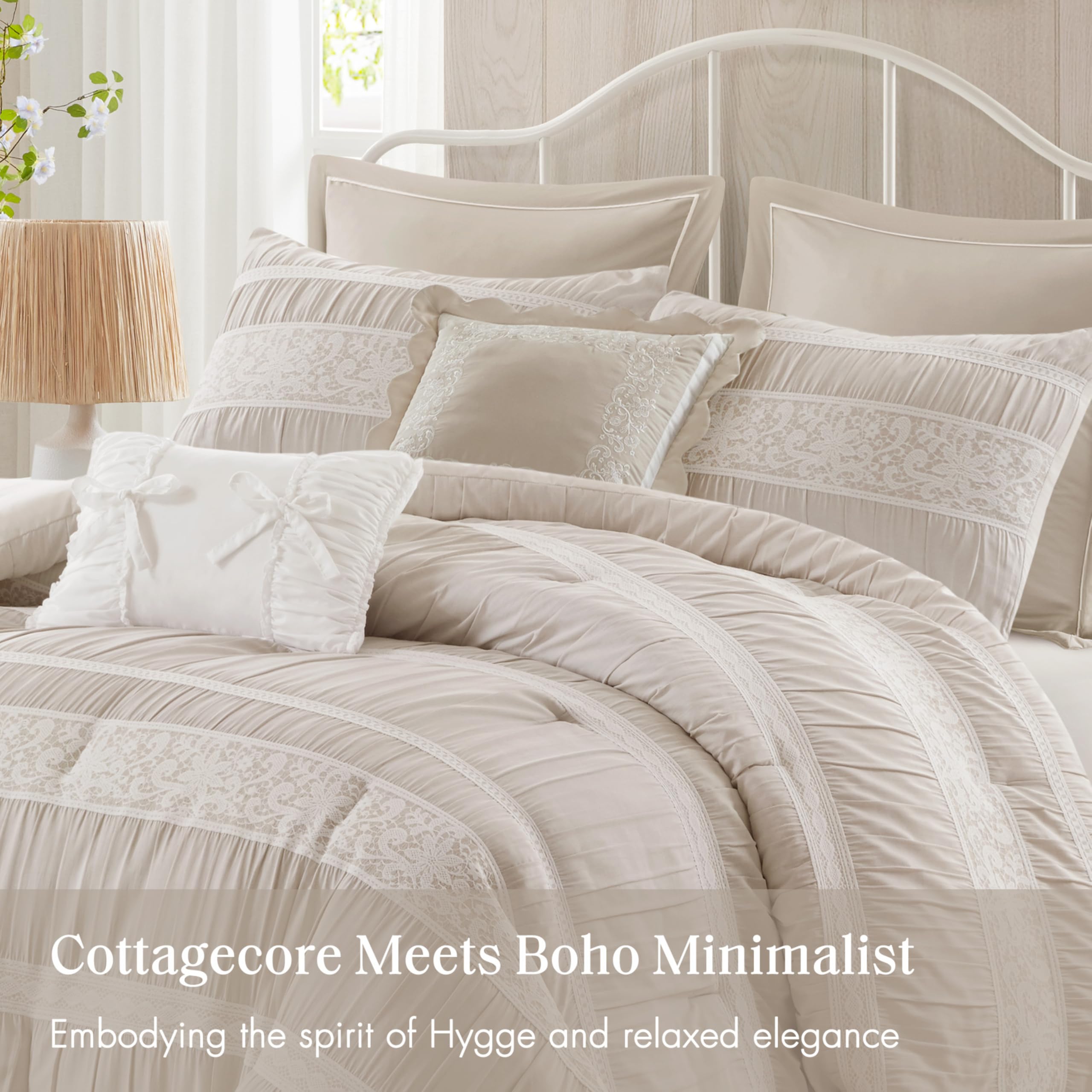 - Thoughtful Comfort & Style – The lightweight yet cozy comforter is ideal for all seasons, while the lace accents and tailored ruching add dimension and sophistication to your farmhouse or modern cottage bedroom.