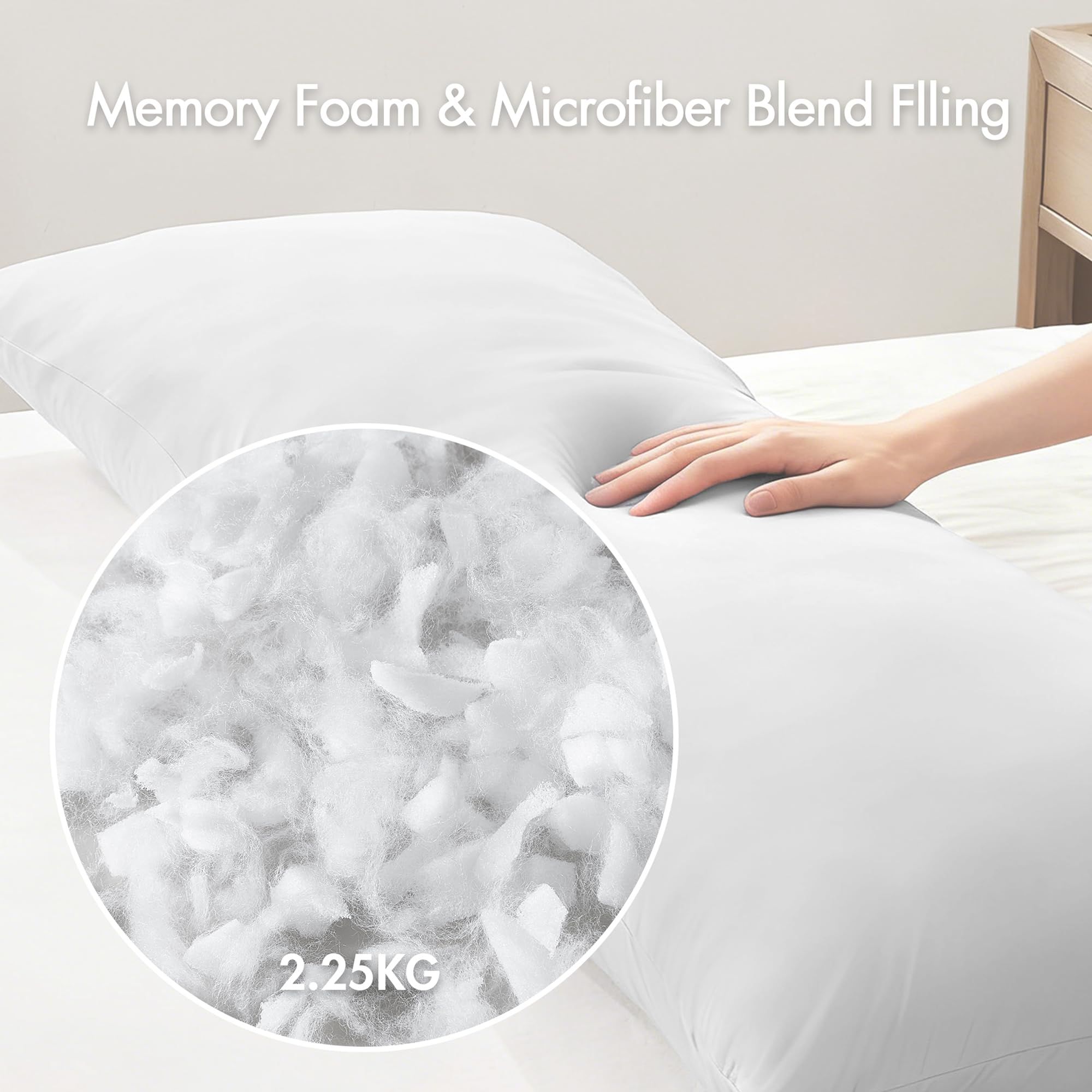 - Balanced Memory Foam Blend for Lasting Comfort — 2.25kg shredded memory foam and down alternative blend offers contouring support with plush comfort, designed to hold its shape and avoid feeling too stiff or overly heavy.