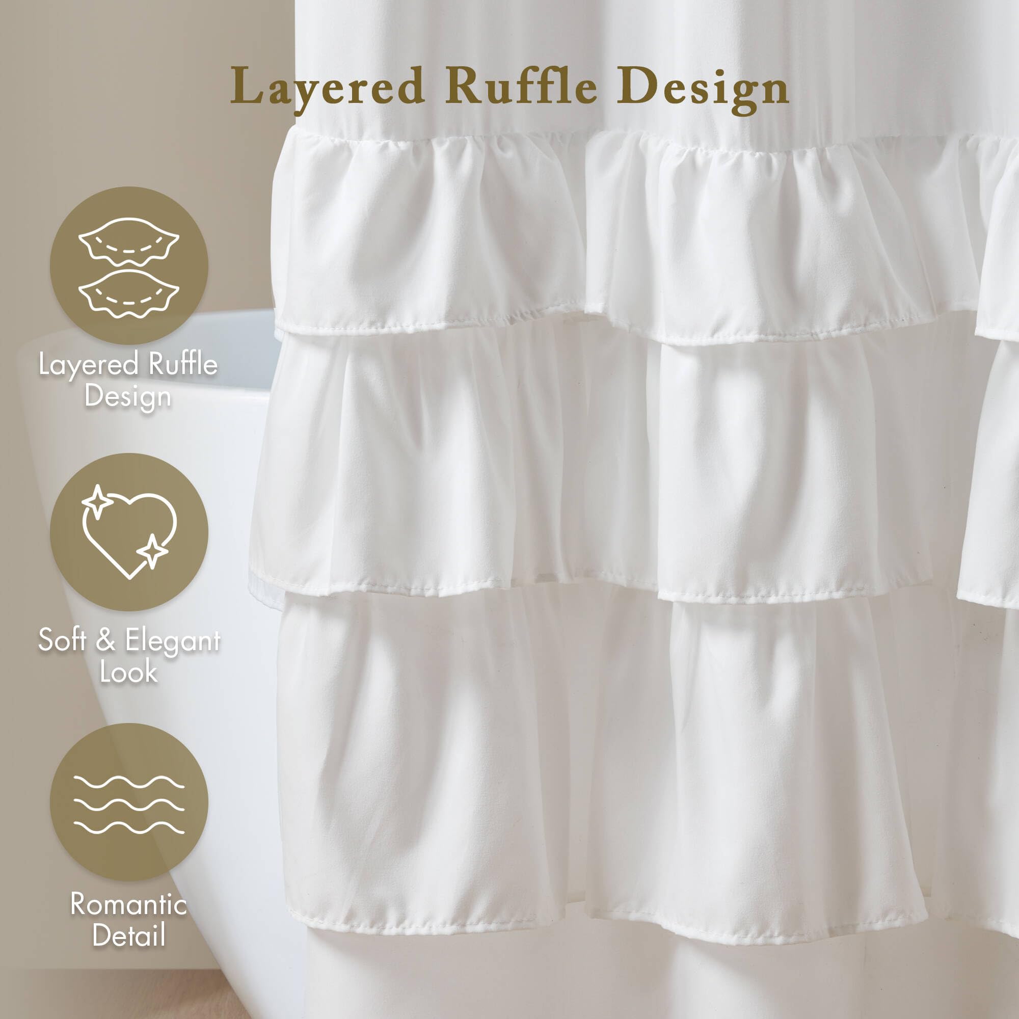 Madison Park Grace White Shower Curtain,Solid Cottage Top Shower Curtains for Bathroom, 72 X 72, White—