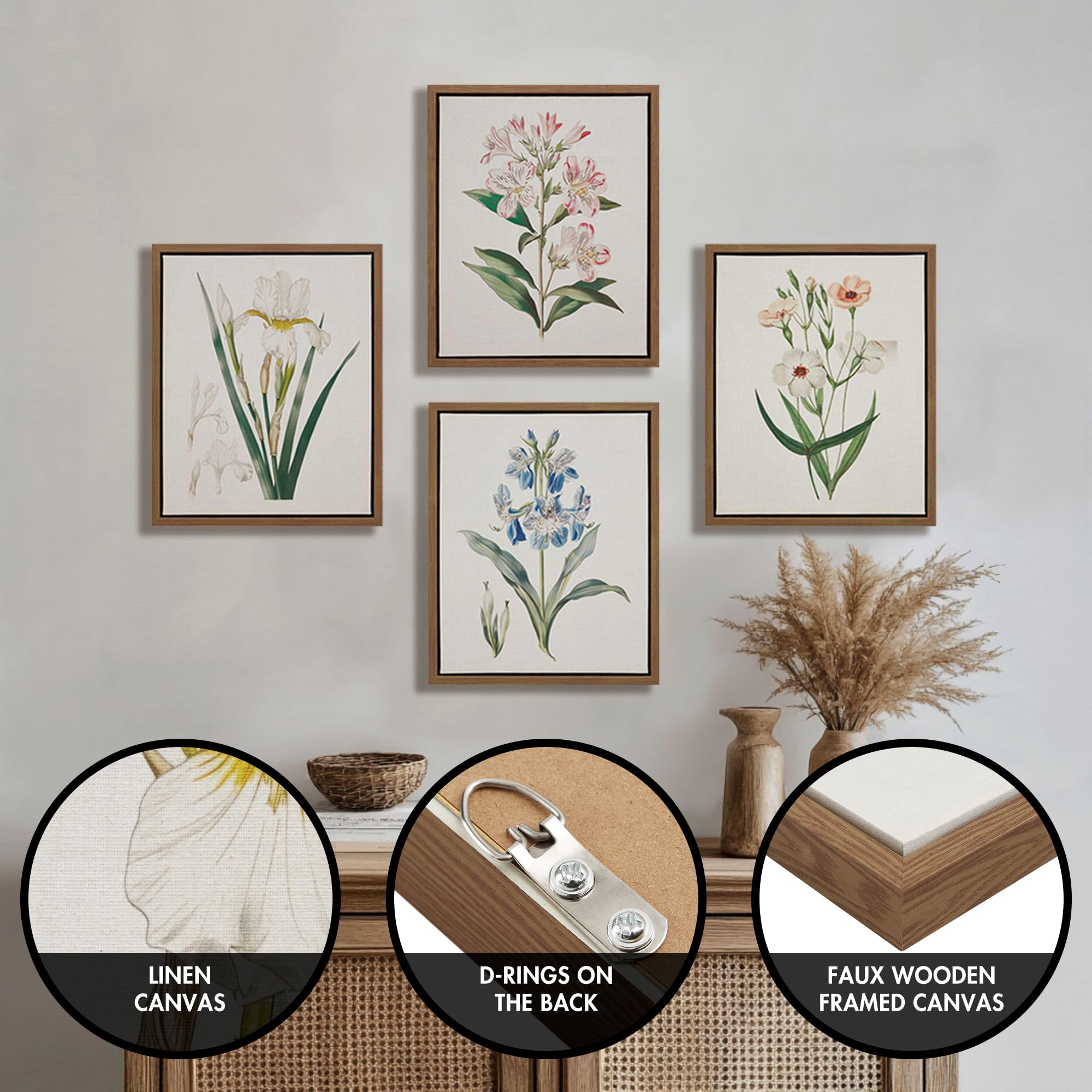 Madison Park Herbal Botany 4-Piece Botanical Illustration Framed Canvas Wall Art Set, Natural Vintage Plant Prints with Wood Grain Frame, Botanical Wall Décor for Bedroom, Living Room, Bathroom, or Entryway